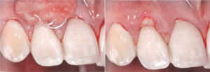 歯肉の下がった箇所の歯肉を歯の上部まで引っ張りあげ、患者様ご自身の上顎の口蓋部(硬口蓋と軟口蓋を合わせた部分)より採取した結合組織を移植します。場合により、歯周組織の再生を促す再生用材料であるEmdogain Gelを使用することもあります。