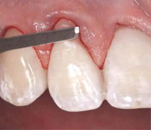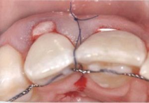 まずはじめに歯肉が退縮している部分の歯肉を切開します。次に上顎の口蓋部より移植する結合組織を採取します。採取した結合組織を歯肉を切開した部分に挿入して縫合し、手術は終了です。手術時間は約2時間程になります。
